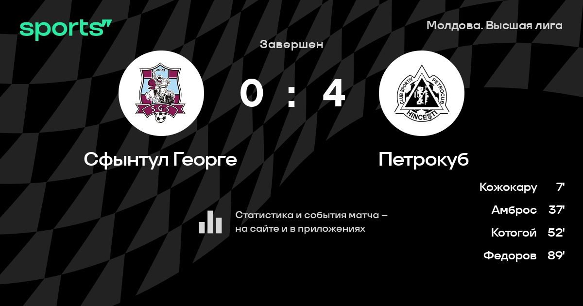 Сфынтул Георге – Петрокуб: Петрокуб не пропускает в 0 из 10 последних матчей против этого соперника