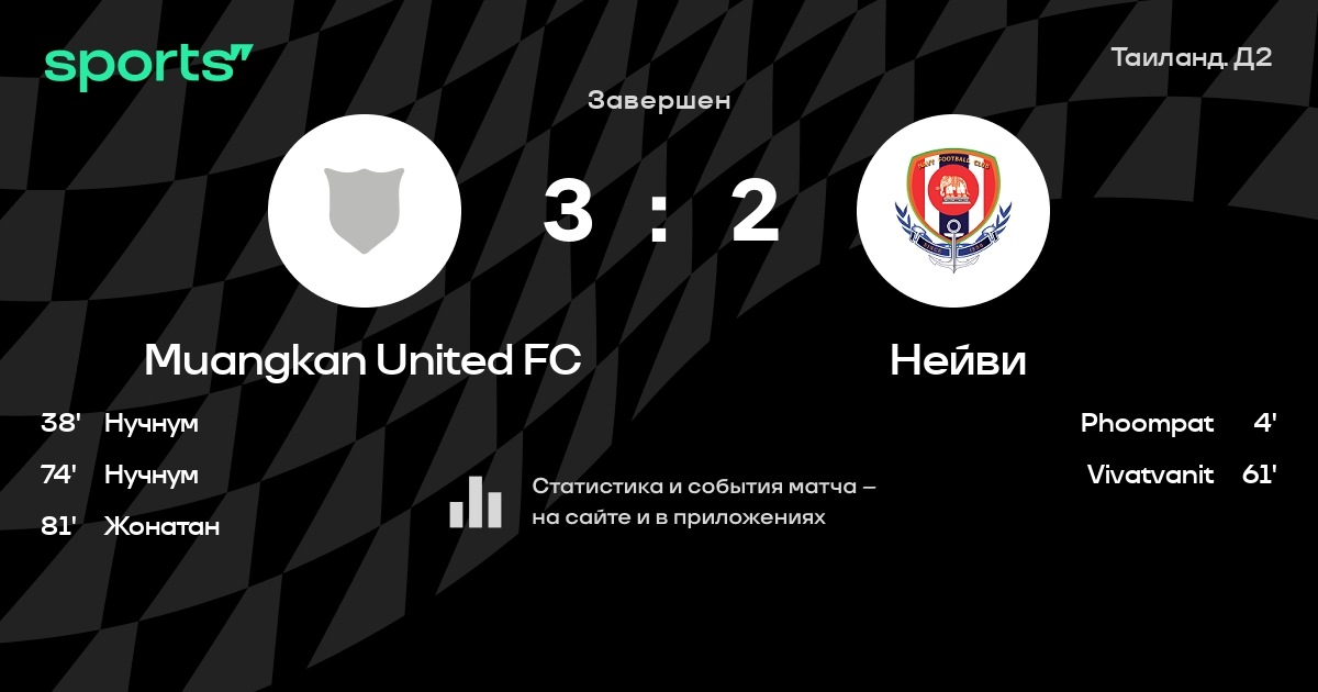 Muangkan United FC не проигрывает в 8 из 10 последних матчей дома