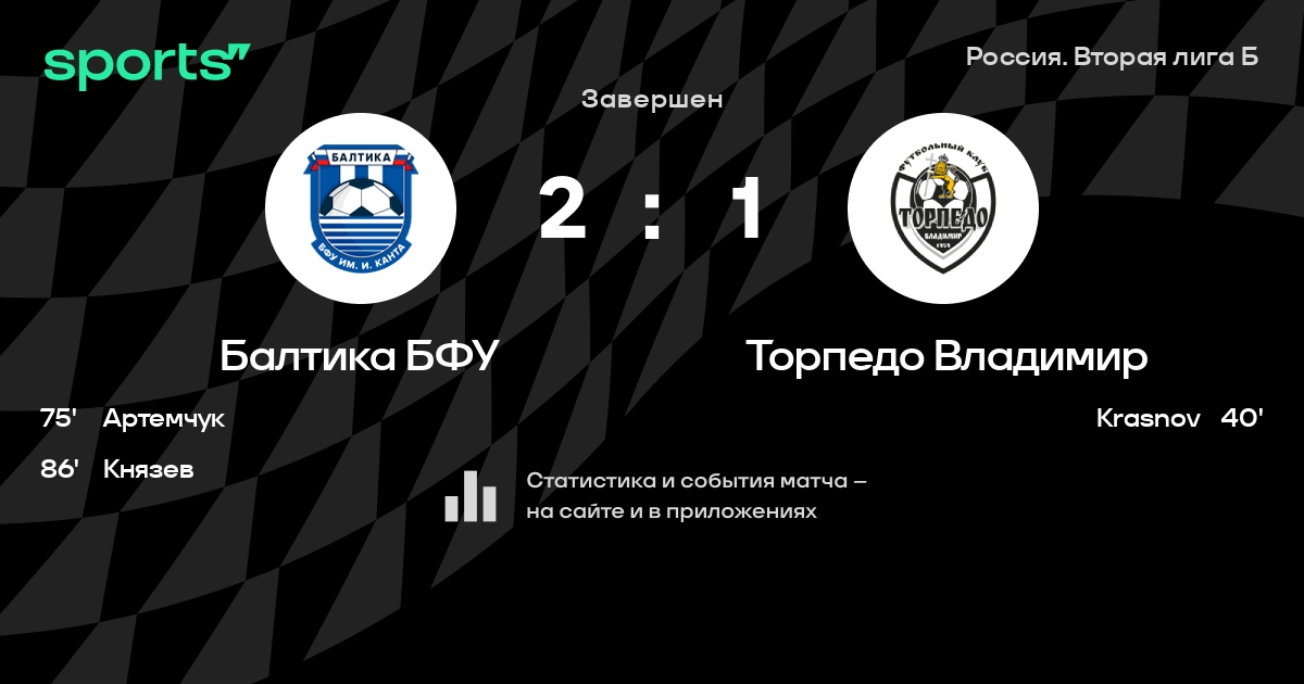 Балтика БФУ – Торпедо Владимир: коэффициенты