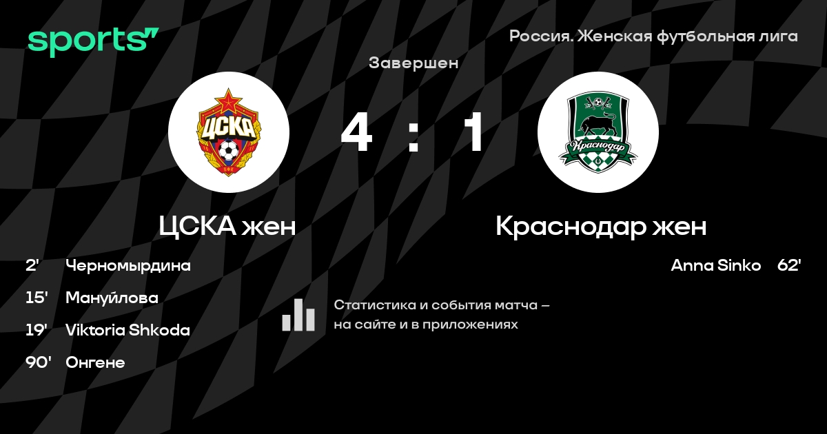 ЦСКА жен – Краснодар жен: ЦСКА жен побеждает в 4 последних очных матчах