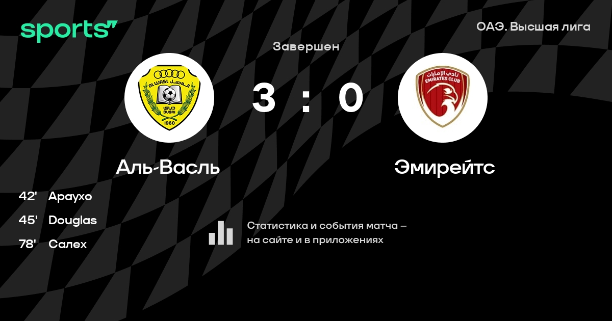 Аль-Васль – Эмирейтс: Аль-Васль забивает в 16 последних матчах против этого соперника