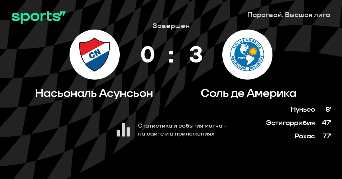 Насьональ Асунсьон – Соль де Америка: Соль де Америка не проигрывает в 9 из 11 последних матчей против этого соперника в гостях