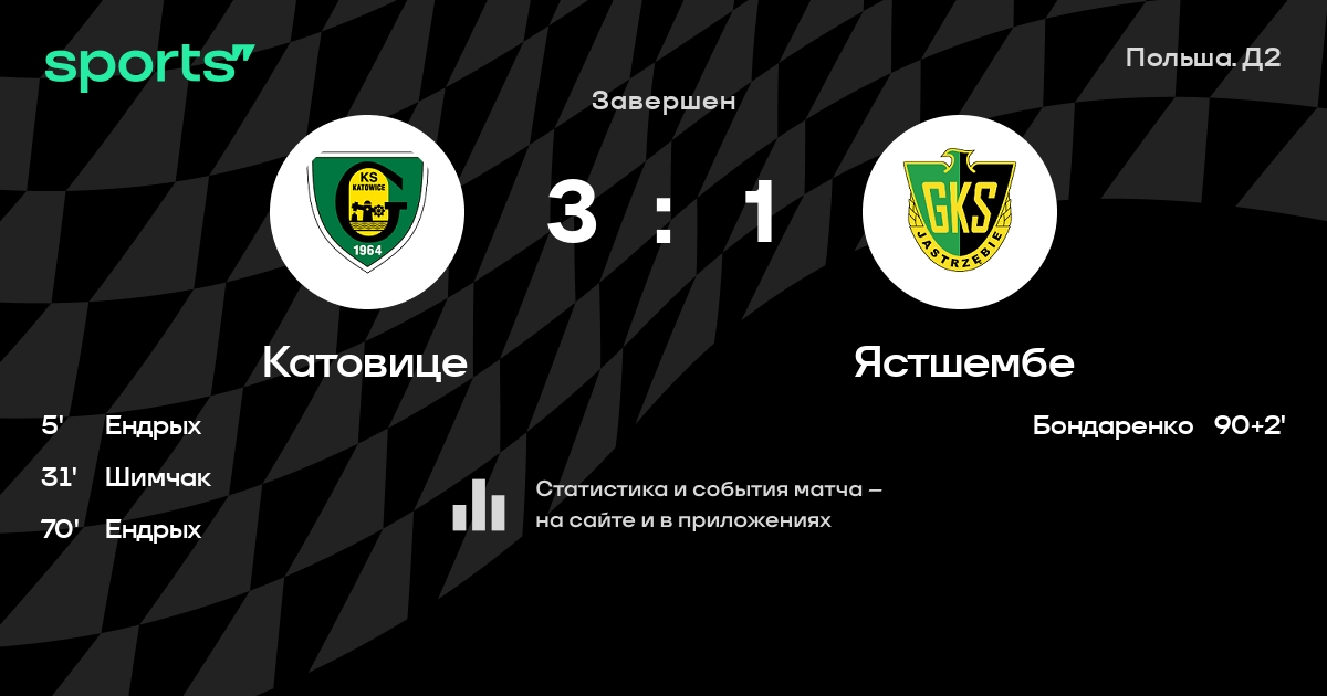 Катовице – Ястшембе: Катовице не проигрывает в 5 из 6 последних матчей против этого соперника в турнире «Польша. Д2»