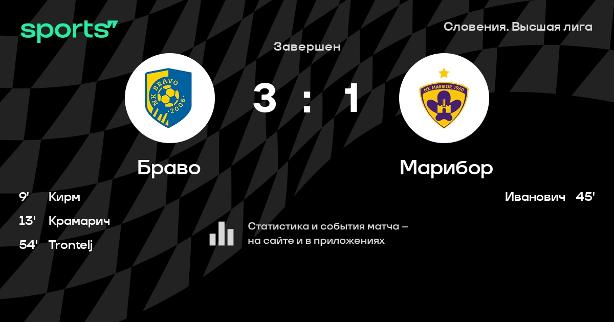 Браво проигрывает в 4 последних матчах в турнире «Словения. Высшая лига»