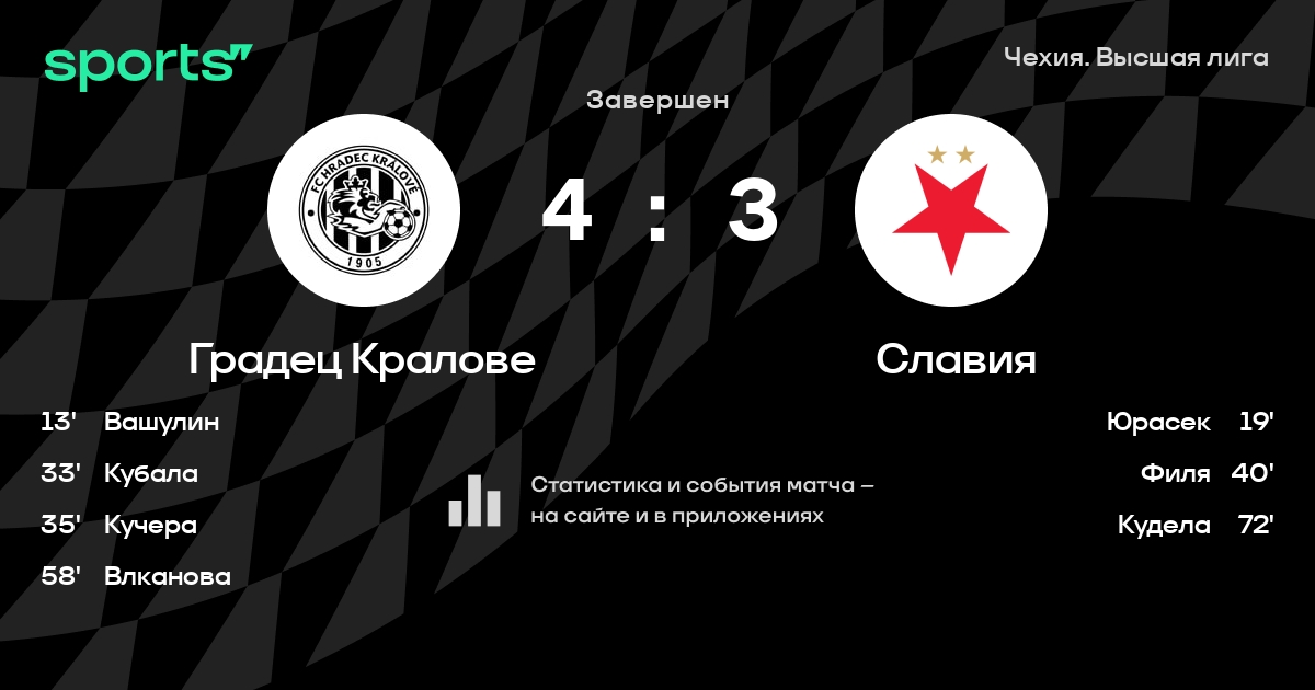 Градец Кралове – Славия: Славия побеждает в 5 последних очных матчах