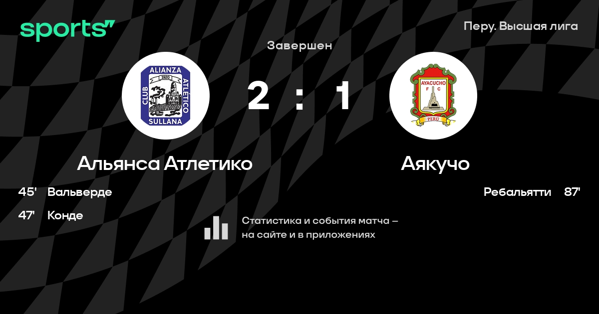 Альянса Атлетико – Аякучо: Аякучо не проигрывает в 5 из 7 последних матчей против этого соперника в гостях