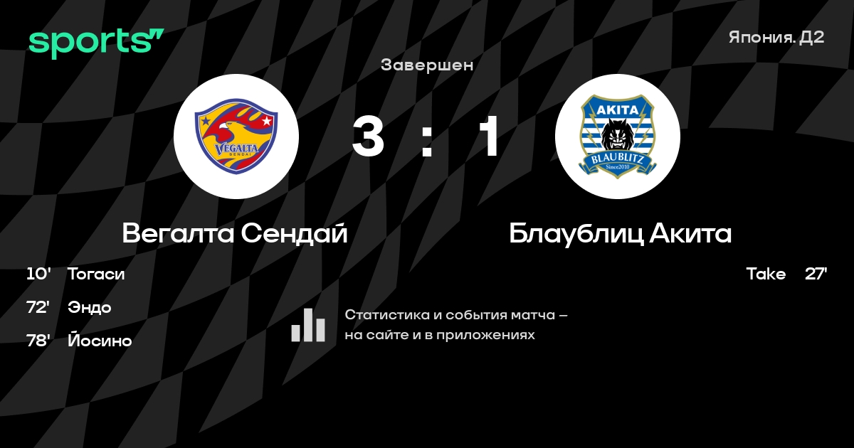 Трансляция Вегалта Сендай - Блаублиц Акита