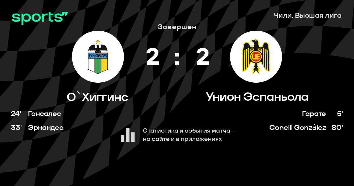 О`Хиггинс – Унион Эспаньола: Унион Эспаньола побеждает в 3 последних очных матчах в гостях