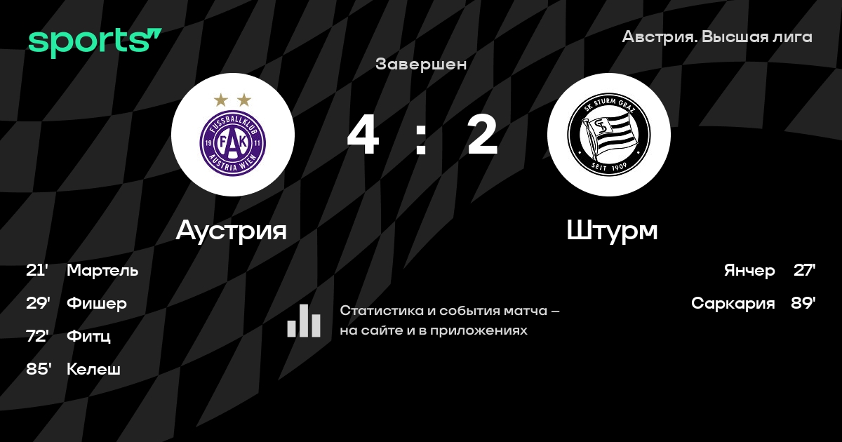 Аустрия – Штурм: Штурм не проигрывает в 5 из 7 последних матчей против этого соперника