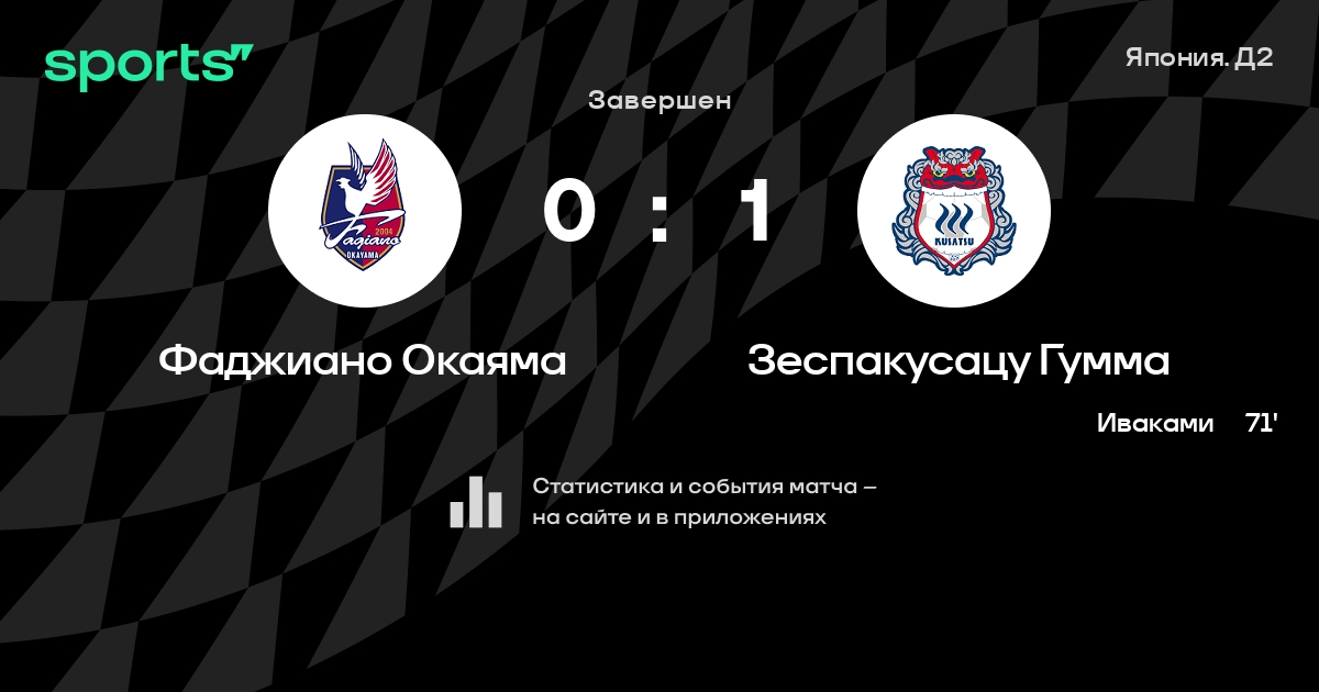Фаджиано Окаяма – Зеспакусацу Гумма: Зеспакусацу Гумма не пропускает в 4 последних матчах против этого соперника