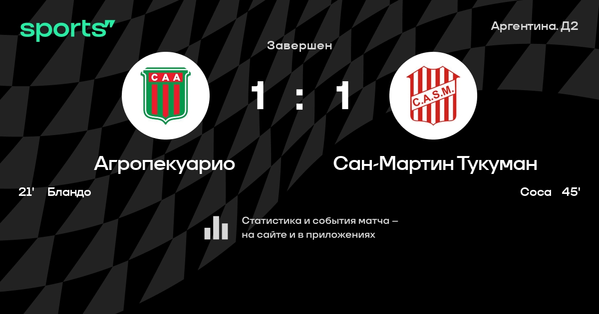 Агропекуарио – Сан-Мартин Тукуман: Сан-Мартин Тукуман забивает в 4 последних матчах против этого соперника