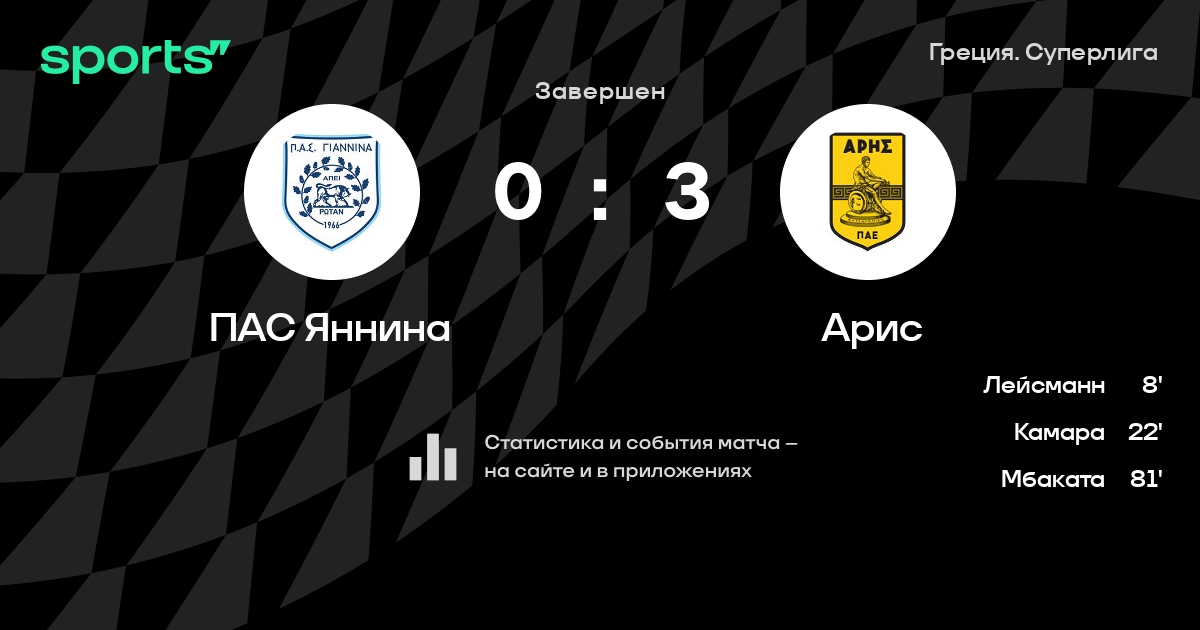ПАС Яннина – Арис: ПАС Яннина не пропускает в 4 последних матчах против этого соперника