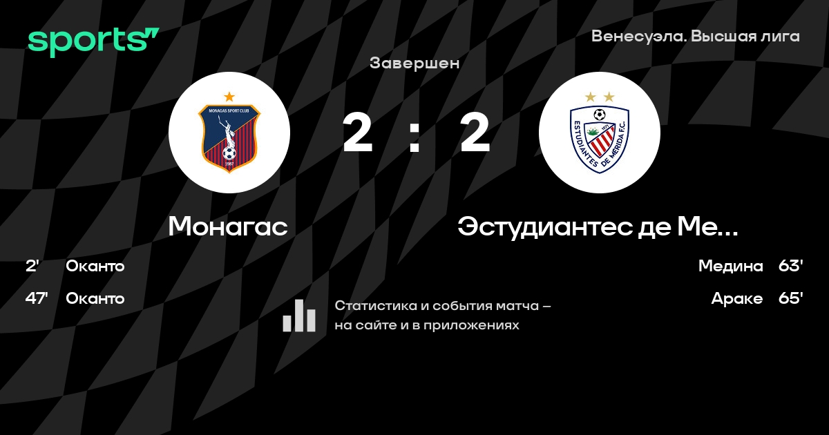 Монагас – Эстудиантес де Мерида: Эстудиантес де Мерида не проигрывает в 5 из 7 последних матчей против этого соперника