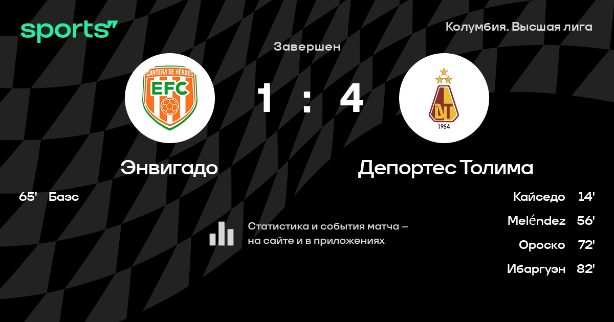 Энвигадо – Депортес Толима: Депортес Толима не проигрывает в 7 из 9 последних матчей против этого соперника