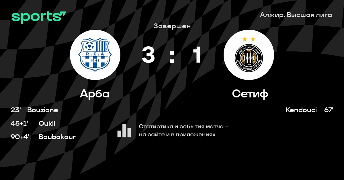 Арба – Сетиф: Сетиф побеждает в 5 последних очных матчах