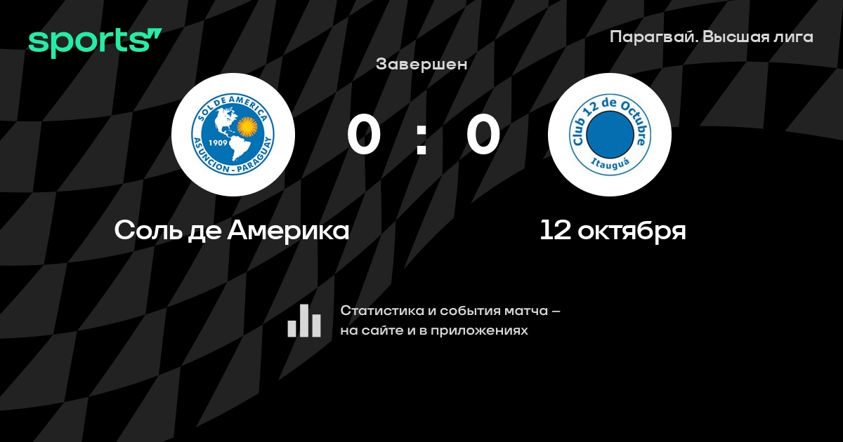 Соль де Америка – 12 октября: 12 октября не проигрывает в 6 последних матчах против этого соперника в гостях