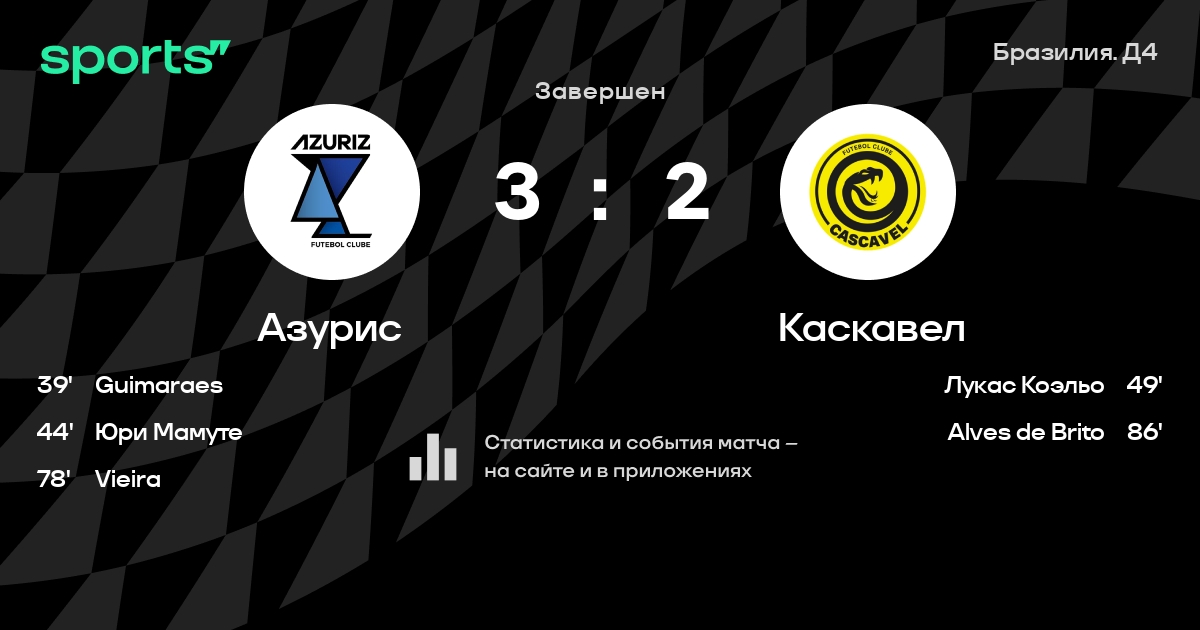 Кайо Алан - Форнари, Саласар, Жамерсон, Игор - Тарлис, Фабио - Юри Мамуте, Веллиссон, Matheus Vinicius Guimarães, РонеЗапасные: Жонатан, de Oliveira Ranieri, Ananias Pinto, Silva dos Santos, de Oliveira Silva, Розебергне, Fonseca de Araújo Martins, Фабрисио Ойя, Cardoso Silva, Vieira da Silva, Mendes dos Santos, Cruz Oliveira