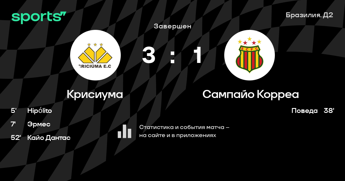 Крисиума – Сампайо Корреа: Крисиума забивает в 3 последних матчах против этого соперника