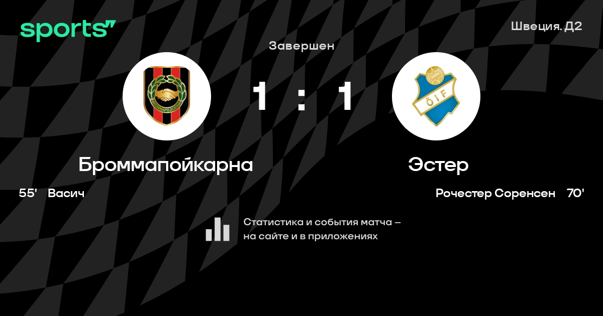 Броммапойкарна – Эстер: Эстер не проигрывает в 5 из 7 последних матчей против этого соперника