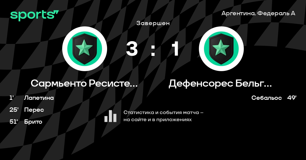 Трансляция Сармьенто Ресистенсия - Дефенсорес Бельграно ВР