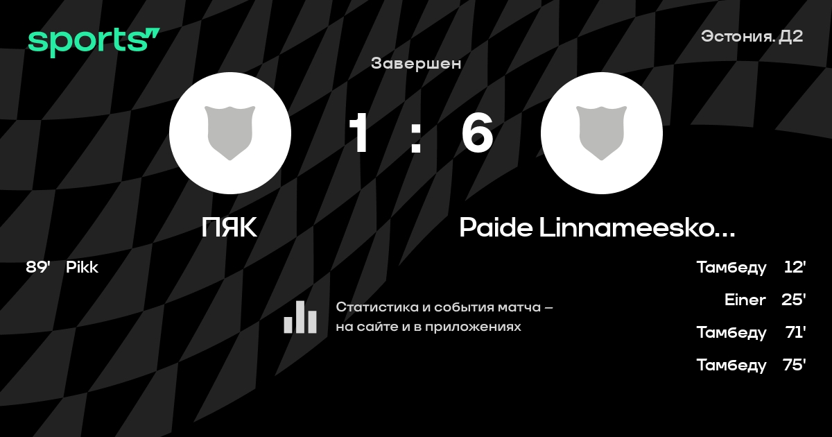 ПЯК – Paide Linnameeskond II: Paide Linnameeskond II не проигрывает в 5 из 6 последних матчей против этого соперника