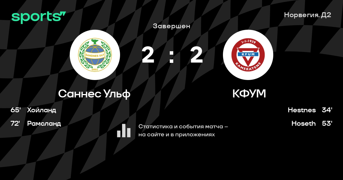 Саннес Ульф – КФУМ: КФУМ не проигрывает в 5 из 7 последних матчей против этого соперника