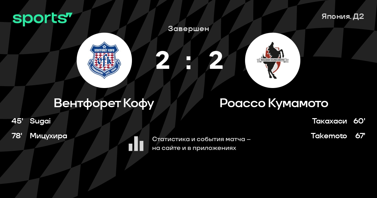 Вентфорет Кофу – Роассо Кумамото: Вентфорет Кофу забивает в 4 последних матчах против этого соперника
