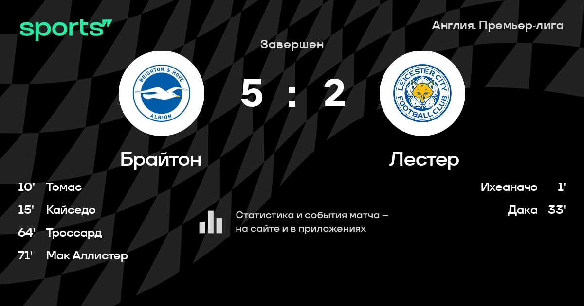 Брайтон – Лестер: Лестер забивает в 6 последних матчах против этого соперника
