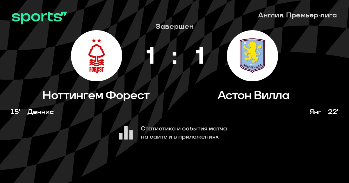 Чемпионат Англии. «Ноттингем Форест» и «Астон Вилла» сыграли вничью