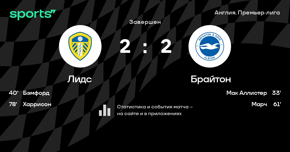 Лидс – Брайтон: Брайтон не проигрывает в 5 последних матчах против этого соперника