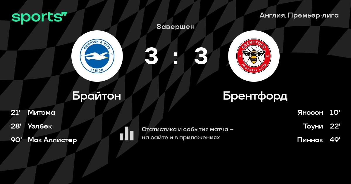 Стил - Эступиньян, Колуилл, Данк, Велтман - Кайседо, Гросс, Митома, Мак Аллистер, Марч - УэлбекЗапасные: Санчес, Уэбстер, ван Хекке, Айяри, Буонанотте, Энсисо, Гилмор, Моран, Ундав