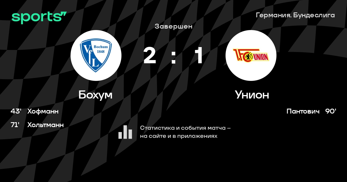 Бохум – Унион Берлин: Бохум не проигрывает в 5 из 7 последних матчей против этого соперника дома