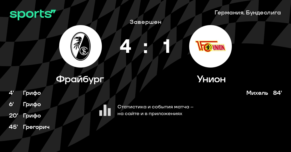 Чемпионат Германии. «Фрайбург» разгромил «Унион», «Айнтрахт» и «Майнц» сыграли вничью