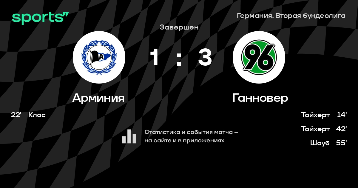 Ганновер не выигрывает в 9 последних матчах в гостях в турнире «Вторая Бундеслига»