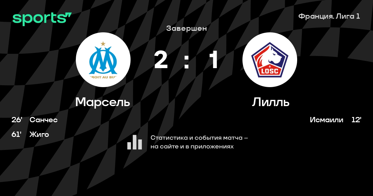 Дебютный гол экс-защитника «Спартака» Жиго принес «Марселю» победу над «Лиллем» (2:1)