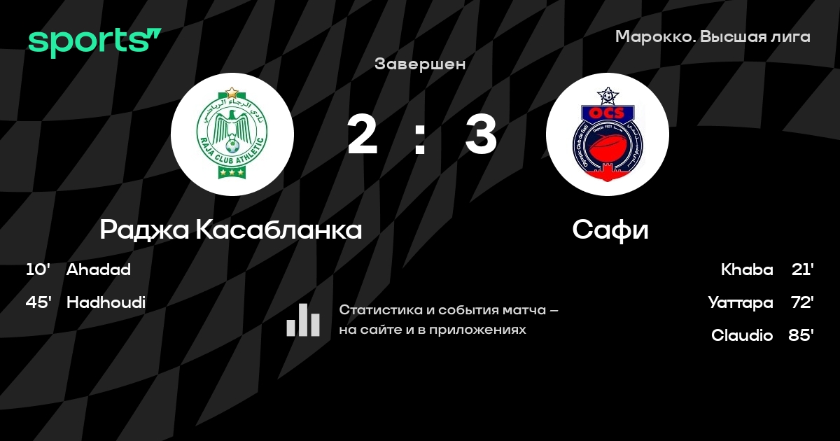 Раджа Касабланка – Сафи: Раджа Касабланка не проигрывает в 7 из 9 последних матчей против этого соперника