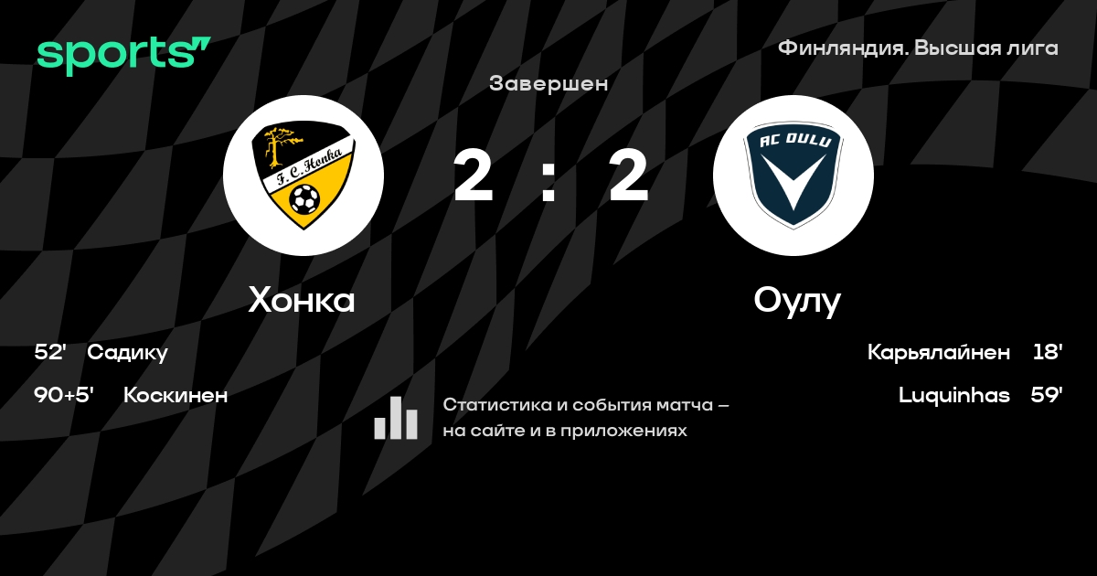 Хонка – Оулу: Хонка не проигрывает в 8 из 10 последних матчей против этого соперника