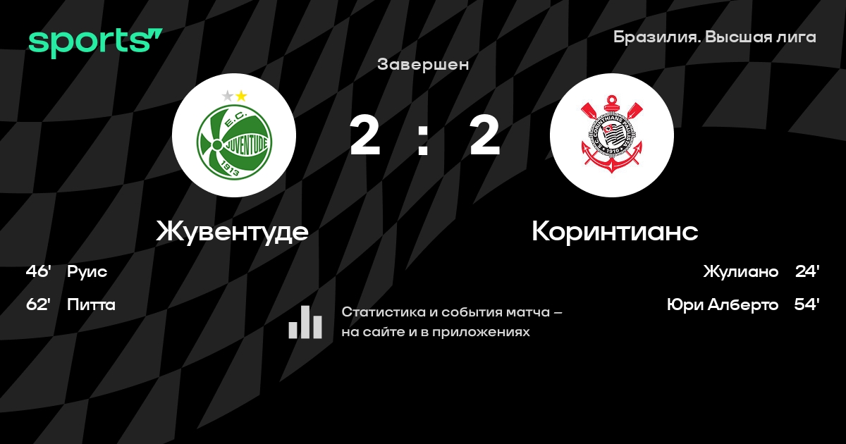 Жувентуде – Коринтианс: Коринтианс не проигрывает в 8 из 10 последних матчей против этого соперника