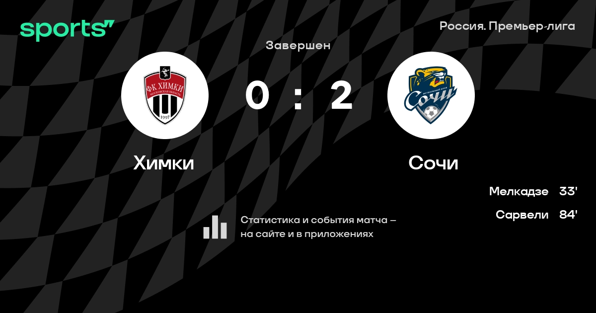 Химки – Сочи: Сочи не проигрывает в 11 последних матчах против этого соперника