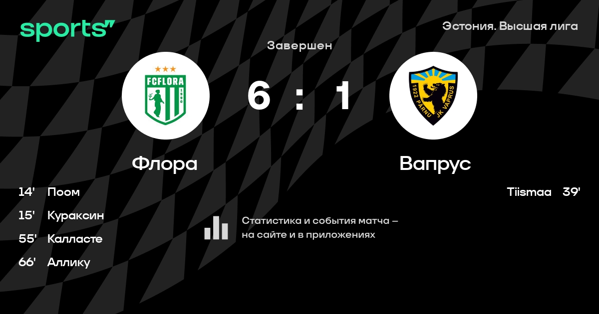 Флора – Вапрус: Флора не пропускает в 6 последних матчах против этого соперника