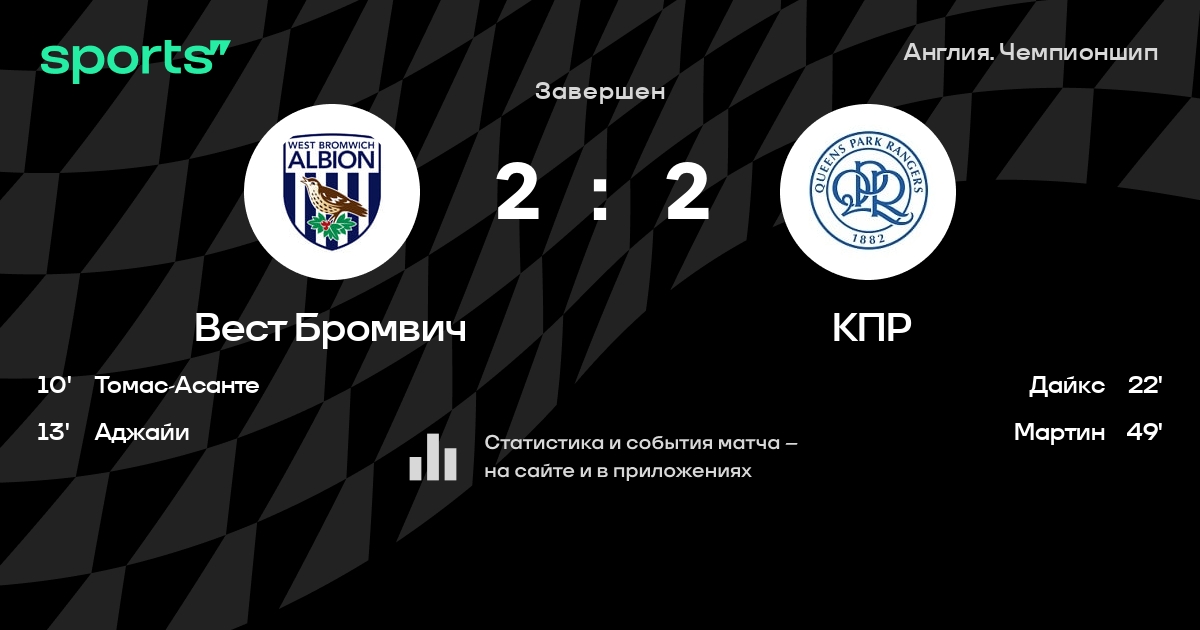 Вест Бромвич – КПР: Вест Бромвич забивает в 8 из 10 последних матчей против этого соперника