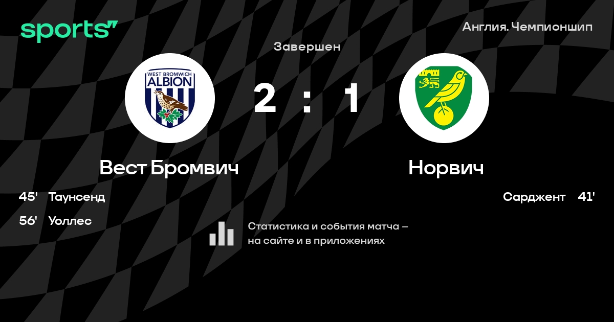 Вест Бромвич – Норвич: Вест Бромвич не проигрывает в 6 последних матчах против этого соперника в турнире «Чемпионшип»