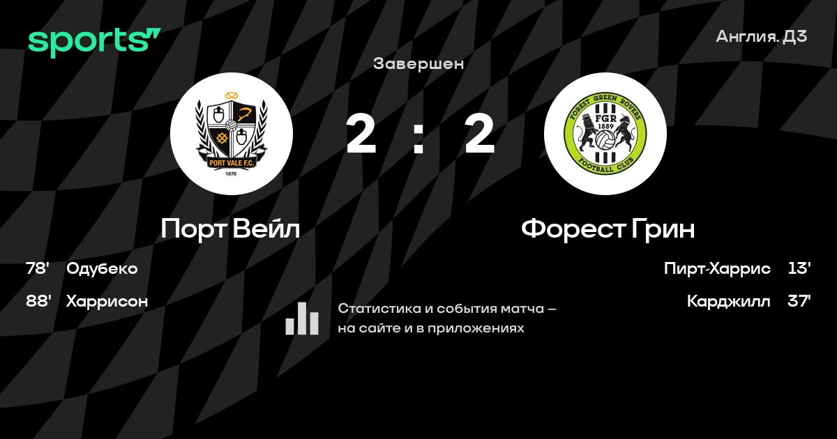 Порт Вейл – Форест Грин: Порт Вейл не проигрывает в 6 последних матчах против этого соперника