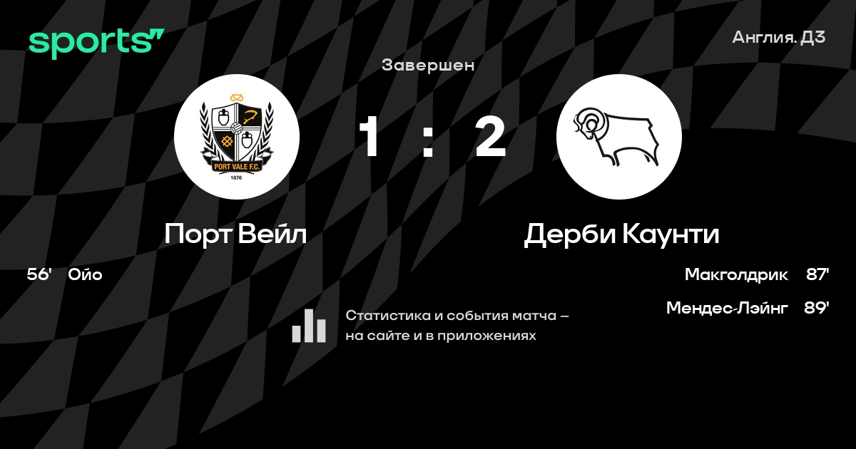 Порт Вейл – Дерби Каунти: Порт Вейл забивает в 3 последних матчах против этого соперника