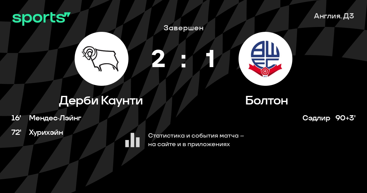 Дерби Каунти – Болтон: Дерби Каунти не проигрывает в 11 из 13 последних матчей против этого соперника