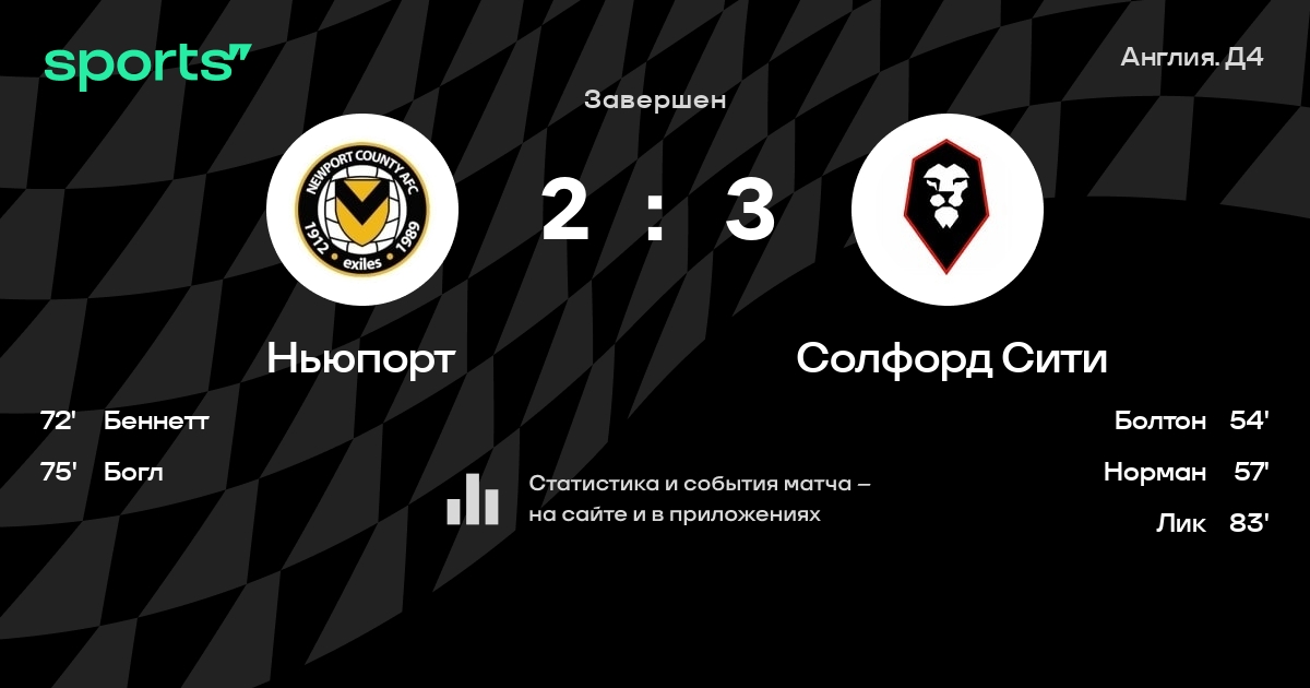 Ньюпорт – Солфорд Сити: Солфорд Сити не проигрывает в 6 из 7 последних матчей против этого соперника