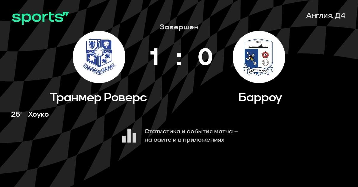 Транмер Роверс – Барроу: Транмер Роверс не проигрывает в 6 последних матчах против этого соперника