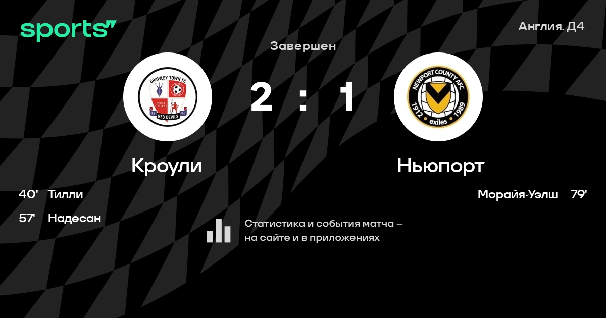 Кроули – Ньюпорт: Ньюпорт не проигрывает в 5 из 7 последних матчей против этого соперника