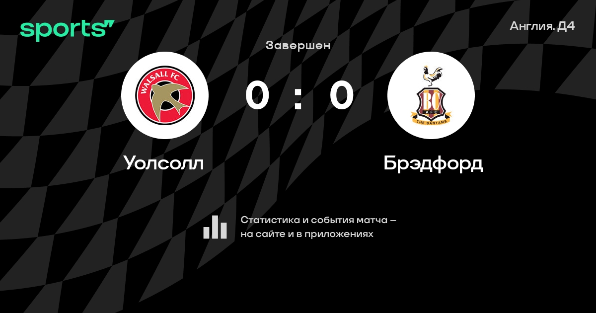 Уолсолл – Брэдфорд: Брэдфорд забивает в 15 последних матчах против этого соперника