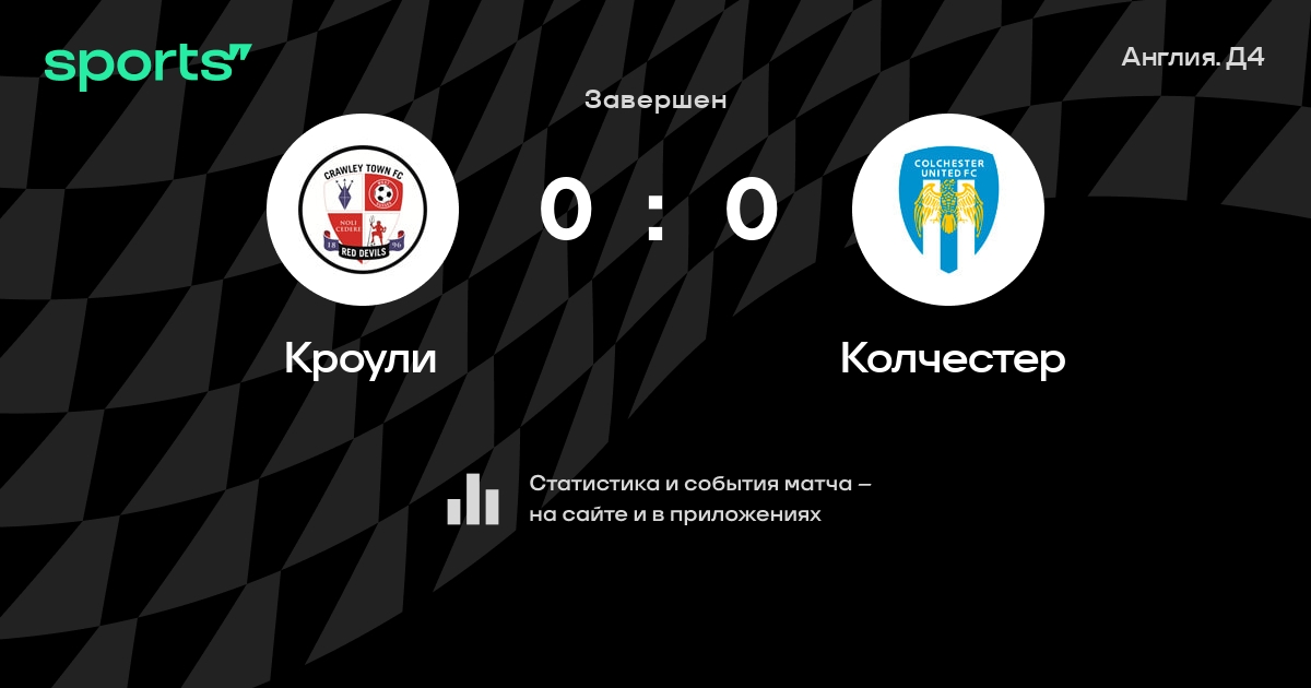 Кроули – Колчестер: Кроули не проигрывает в 6 последних матчах против этого соперника